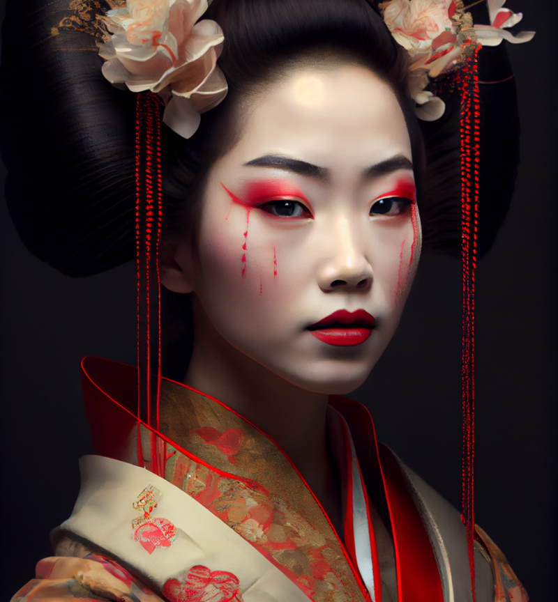 This Geisha is the mix of an Egyptian Cleopatra and the Mixtli Nahuatl